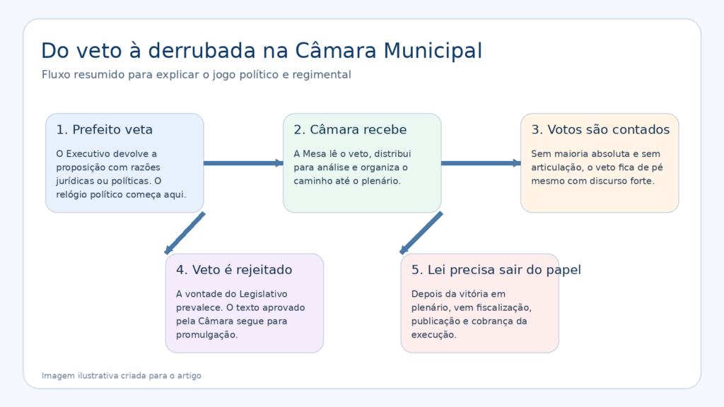 Fluxo resumido da tramitação política e regimental do veto na Câmara Municipal.