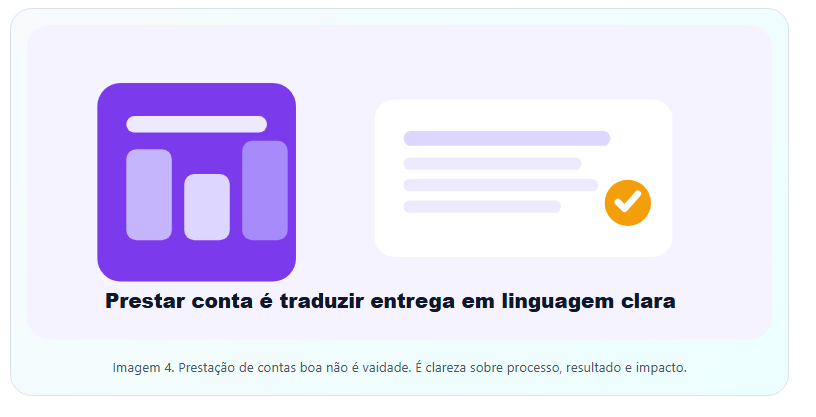 Imagem 4. Prestação de contas boa não é vaidade. É clareza sobre processo, resultado e impacto.