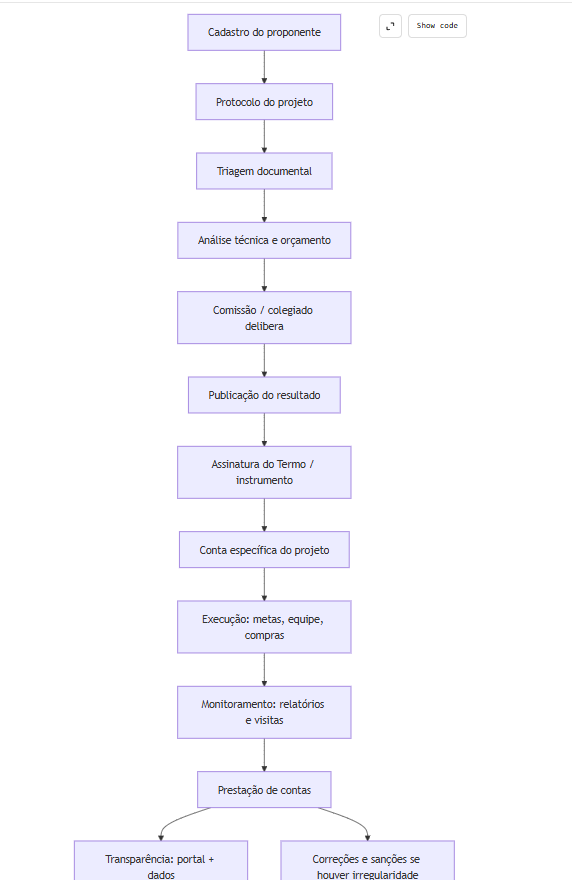 O melhor jeito de desenhar processo é pensar em três perguntas. Quem pode propor projeto. Quem aprova. Quem acompanha e cobra. O Gov.br, quando descreve o serviço federal, organiza essa lógica com clareza: explica quem pode usar e descreve etapas como cadastrar proponente, cadastrar projeto e acompanhar andamento.