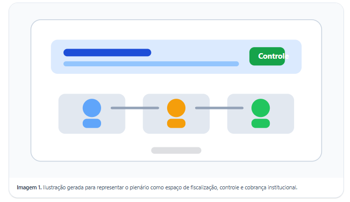 Imagem 1. Ilustração gerada para representar o plenário como espaço de fiscalização, controle e cobrança institucional.
