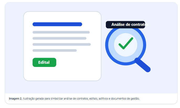 Imagem 2. Ilustração gerada para simbolizar análise de contratos, editais, aditivos e documentos de gestão.