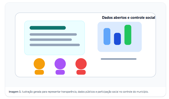 Imagem 3. Ilustração gerada para representar transparência, dados públicos e participação social no controle do município.