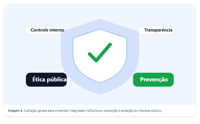 Imagem 4. Ilustração gerada para simbolizar integridade institucional, prevenção e proteção do interesse público.
