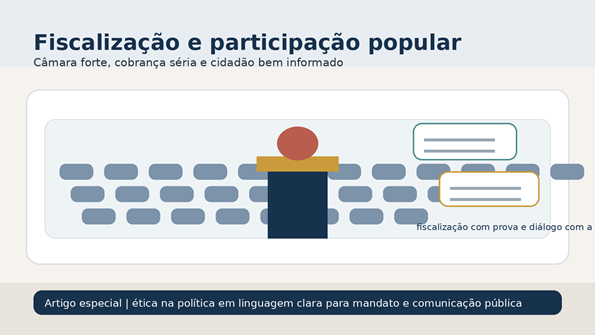 Eu prefiro a fiscalização que constrange pelo documento e pela coerência. Ela dá mais trabalho, mas sustenta a reputação do mandato. Ética na política também é saber que forma importa. Não adianta acertar a crítica e errar no método, porque o método errado desgasta a confiança que torna a crítica eficaz.