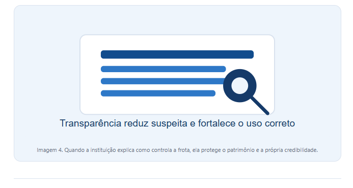 Prestação de contas boa não é despejar dado bruto sem contexto. É explicar quantos veículos existem, qual a finalidade, como funciona a autorização, quais controles são exigidos e qual foi o custo agregado. Se houver viagens relevantes ou agendas institucionais frequentes, dá até para mostrar exemplos do fluxo de controle adotado. Isso educa o cidadão e fortalece a confiança institucional.