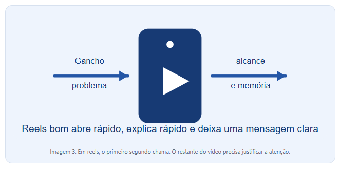 Imagem 3. Em reels, o primeiro segundo chama. O restante do vídeo precisa justificar a atenção.