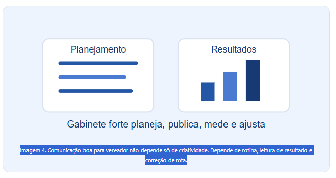 Imagem 4. Comunicação boa para vereador não depende só de criatividade. Depende de rotina, leitura de resultado e correção de rota.